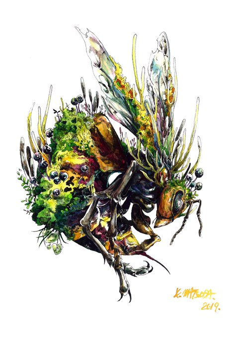 Gai トライバルデザイナー Crabhouse作った人 蜂っぽい絵が描けました 果物のようなものを持ってます トライバル Tribal 細密画 蜂 昆虫 イラスト T Co Rg81e7grfq Twitter